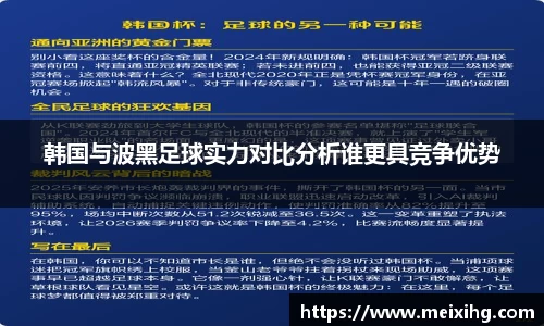 本文将对韩国与波黑两国足球实力进行全面分析,旨在探讨这两个国家在足球领域的竞争优势。通过对历史成就、球队发展、球员水平以及战术风格四个方面的深入研究,我们将揭示出哪一方更具备足球竞技的优越性。首先,文章将回顾两国的历史成就,并比较其在国际赛事中的表现;接着,将分析两国足球的发展现状,包括青训体系和联...